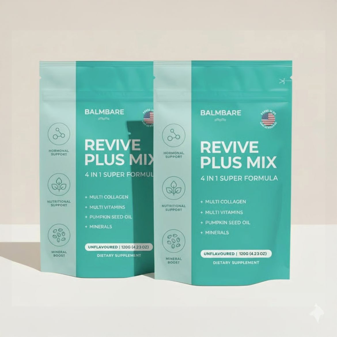 Revive plus comes with collagen, protein, multi vitamins, pumpkin seed oil all in one. Its formulated so you can get everything you need from 1 single packet.